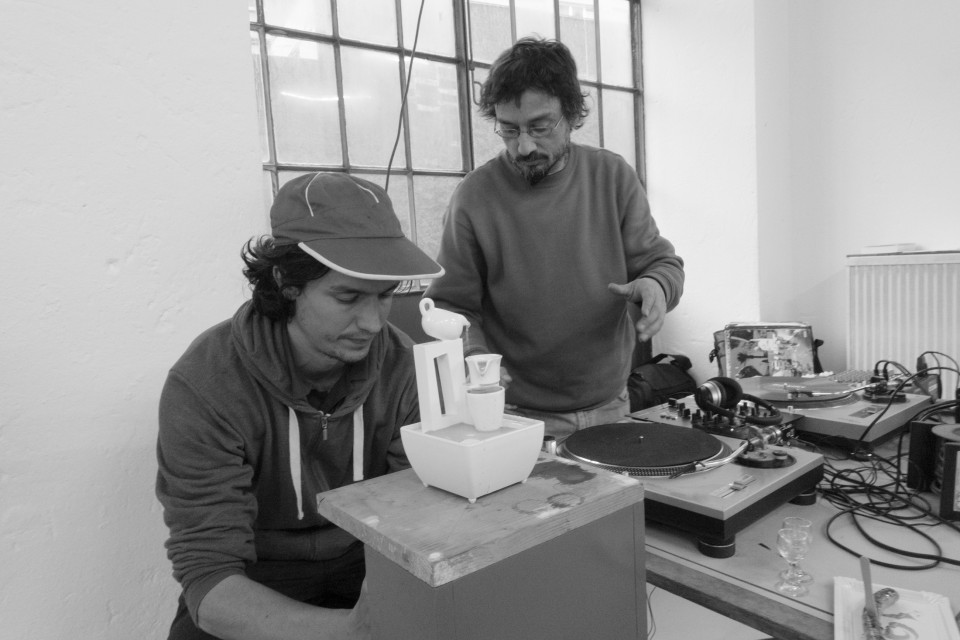 À mi-chemin entre savoir faire et maladresse, Gil Pellaton (1982) s’inspire librement des techniques de l’artisanat pour créer des fictions. Il fabrique et bricole des artefacts simples qu’il mêle à sa pratique picturale.