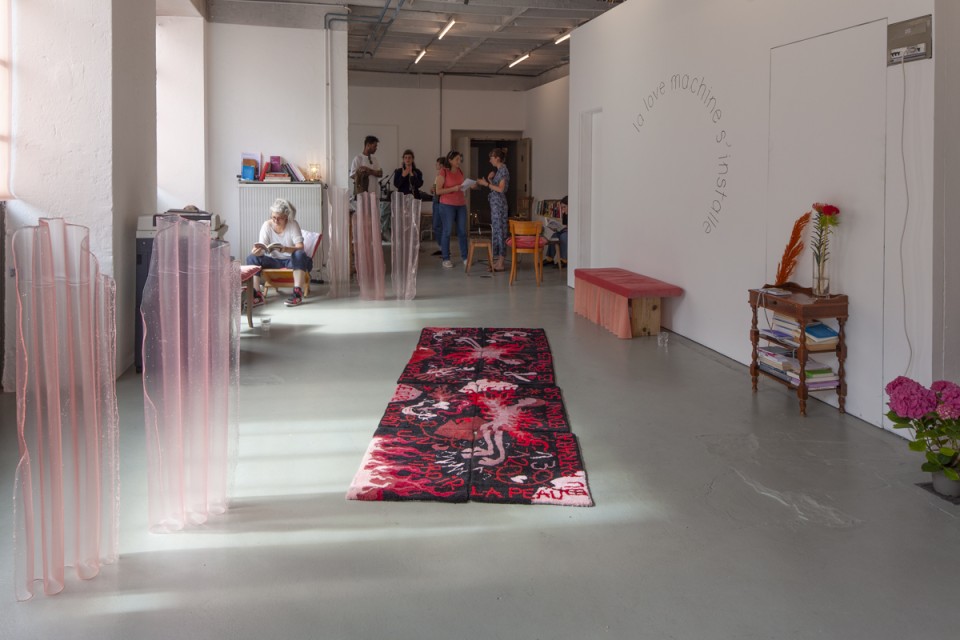 «la love machine s’installe» est pensé comme un lieu de rencontres, où les livres et la littérature sont tant le point de départ que le centre des réflexions. Les textes et les livres mis à disposition s’inscrivent dans une démarche de lutte contre le gender gap. Les clubs de lectricexs et les interventions s’engagent en faveur de lectures féministes, intersectionnelles, transversales et militantes. Tou·te·x·s sont invité·e·x·s à investir l’espace, lire, penser, écouter, échanger, et amener ses propres références afin de faire circuler et partager les savoirs. L’espace est pensé pour prendre le temps, s’asseoir, se coucher, se reposer.