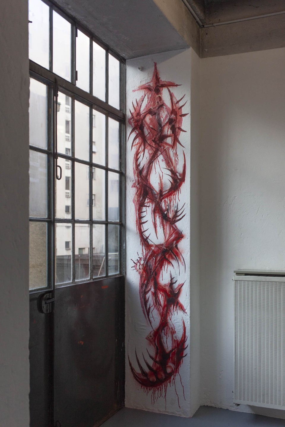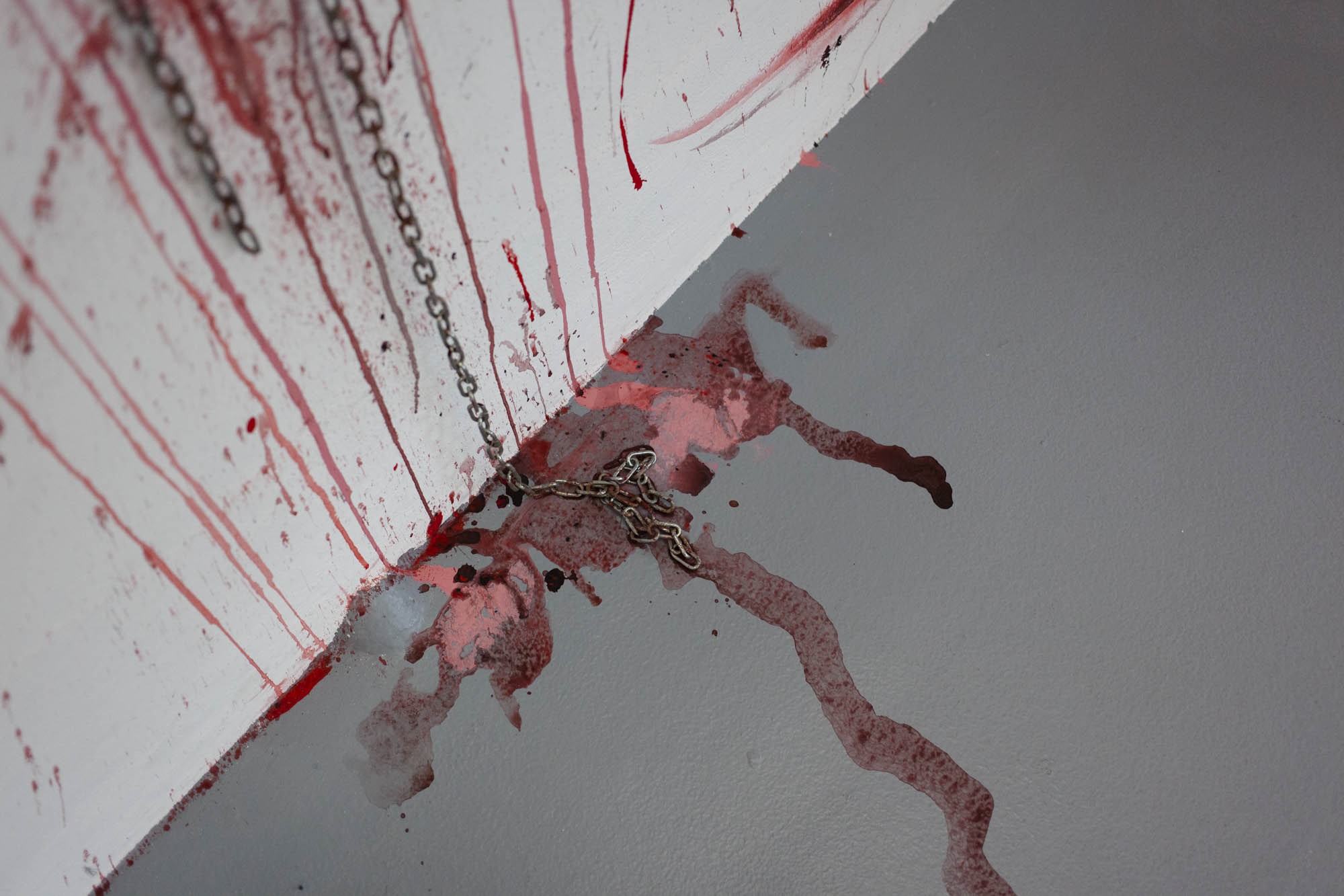 Sabrina Biro et ᛟᛞᛁᚾᛟ ont réalisé spécialement pour cette exposition une série de photographies, des sculptures et des peintures murales. Brutales et à la fois séduisantes, les oeuvres de ces deux artistes interrogent la fascination que nous pouvons entretenir avec la mort et ses représentations. Les vanités dépeintes dans l’histoire de l’art occidentales, à savoir des images représentants des ossements ou tout objets ayant un lien direct avec la mort, possédaient différentes significations mais convergeaient sur la même idée. Peu importe notre classe sociale, savoir, identité ou richesses, nous finirons tous·x·tes en poussière. Notre relation à la mort s’est développée ces dernières décennies avec le cinéma et les séries. D’une réflexion philosophique, notre oeil s’est orienté vers un attrait pour l’organique, le sensationnel. Sabrina Biro et ᛟᛞᛁᚾᛟ illustrent ce glissement sémantique et esthétique chacun·e à leur manière. Du Memento mori au gore, At the heart of it all propose au public une expérience sensorielle.