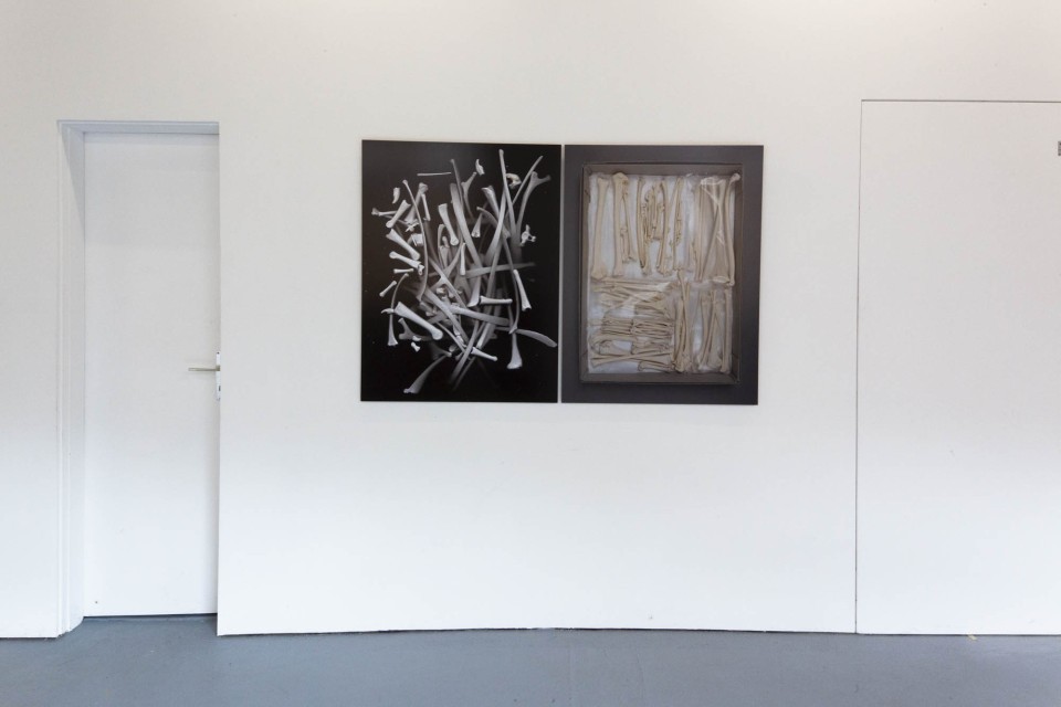 L’artiste lausannoise Sabrina Biro, taxidermiste de formation, récupère des dépouilles inutiles au Musée cantonal de zoologie de Lausanne. Elle travaille ensuite sur ce matériau, blanchi les os, les orne ou les transforme. L’intention est de retenir quelque chose, un peu comme le fait la photographie, garder une individualité, une trace du vivant. Elle tatoue des textes sur des oreilles de porc, marque, trace, s’approprie des chairs qui ne lui appartiennent pas, s’essaie aux machines de traçage. Sabrina Biro entretient une relation particulière avec le vivant. Iconoclasme doux, elle joue avec nos idées de la mort et, surtout, sur la dépossession de notre enveloppe charnelle.