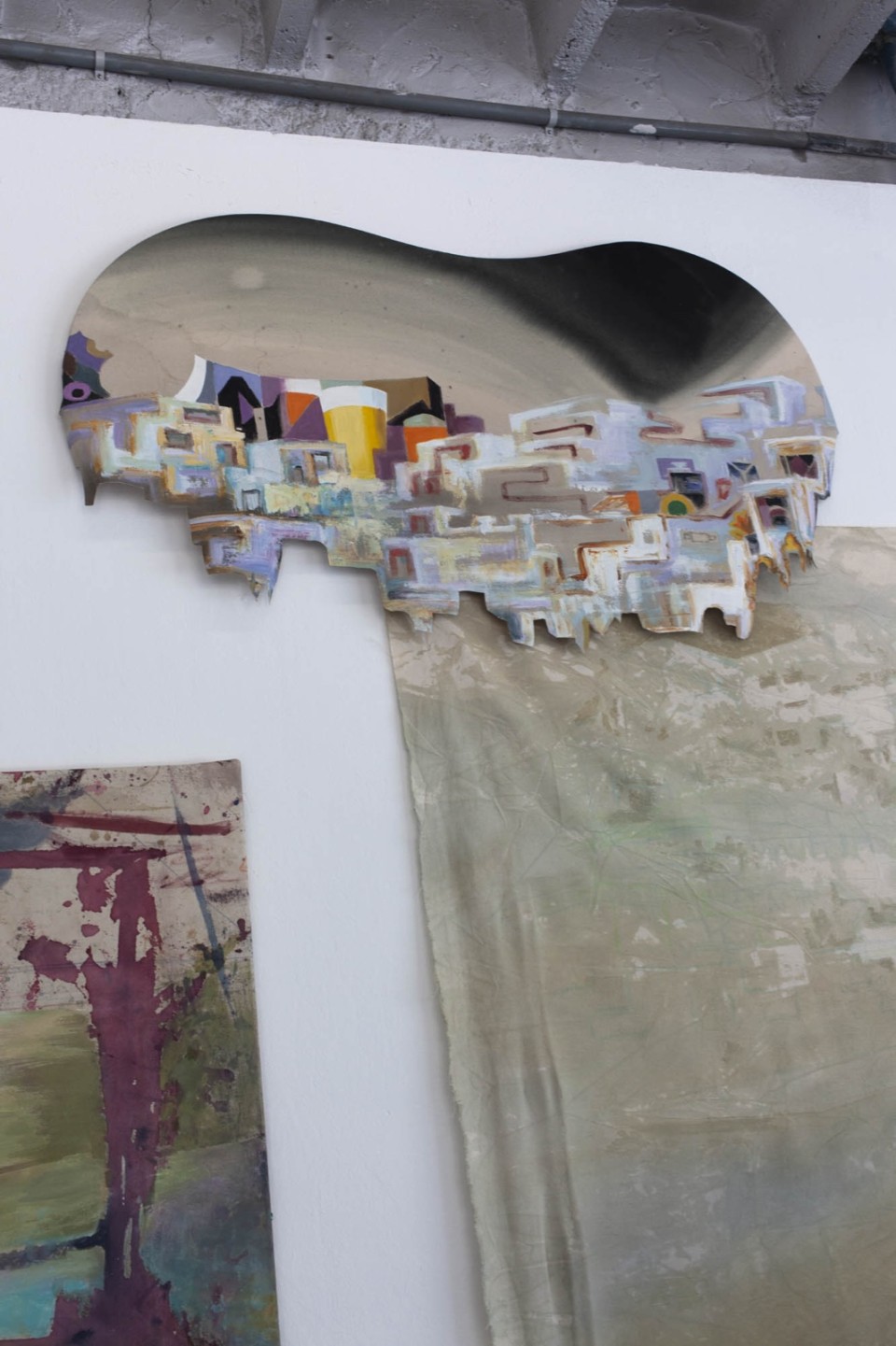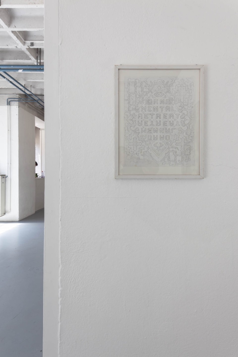 L’exposition intitulée sobrement Construire sa propre mania, combine à la manière parodique d’une rétrospective, certains effets typiques de la cosmologie personnelle de l’artiste et qui décline un vocabulaire à la fois formel et métaphysique navigant entre les collages surréalistes d’Ayham Jabr, les divagations graphiques de la revue Métal Hurlant ou les casinos bariolés de l’architecte bolivien Freddy Mamani Sylvere: abstraction cosmique, constructivisme transcendantal, ornementalisme baroque, paysages oniriques ou natures mortes psychédéliques.