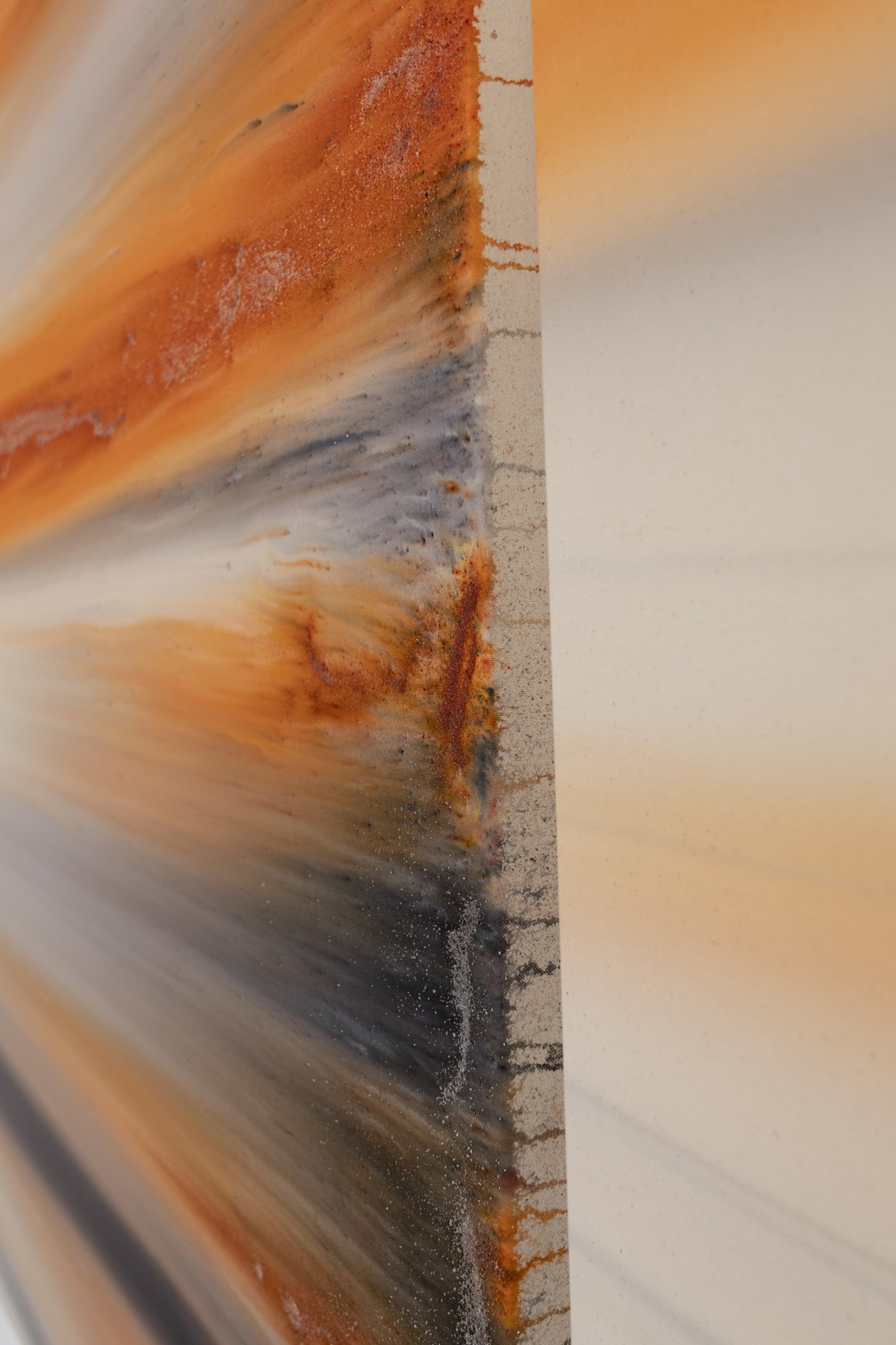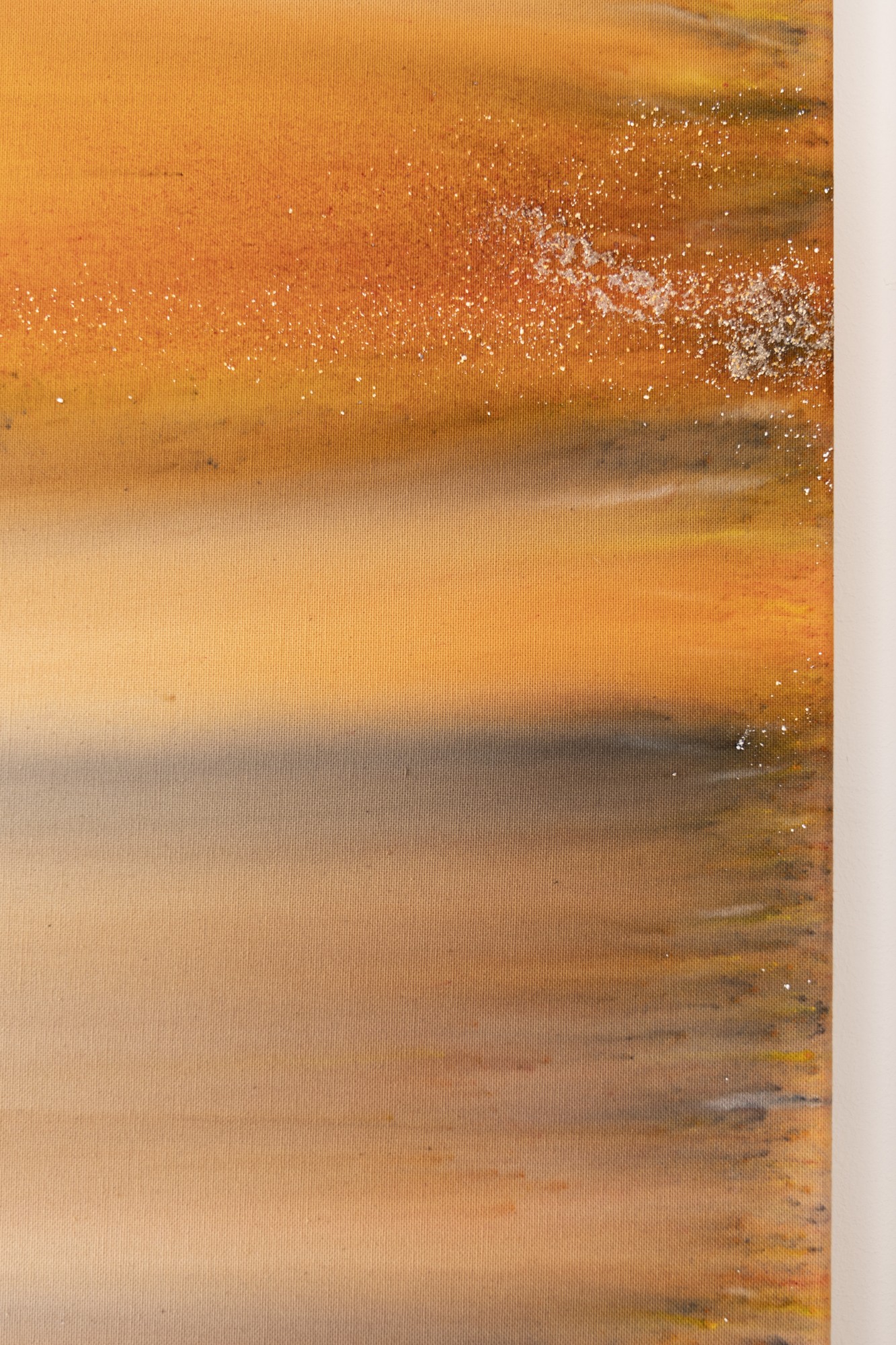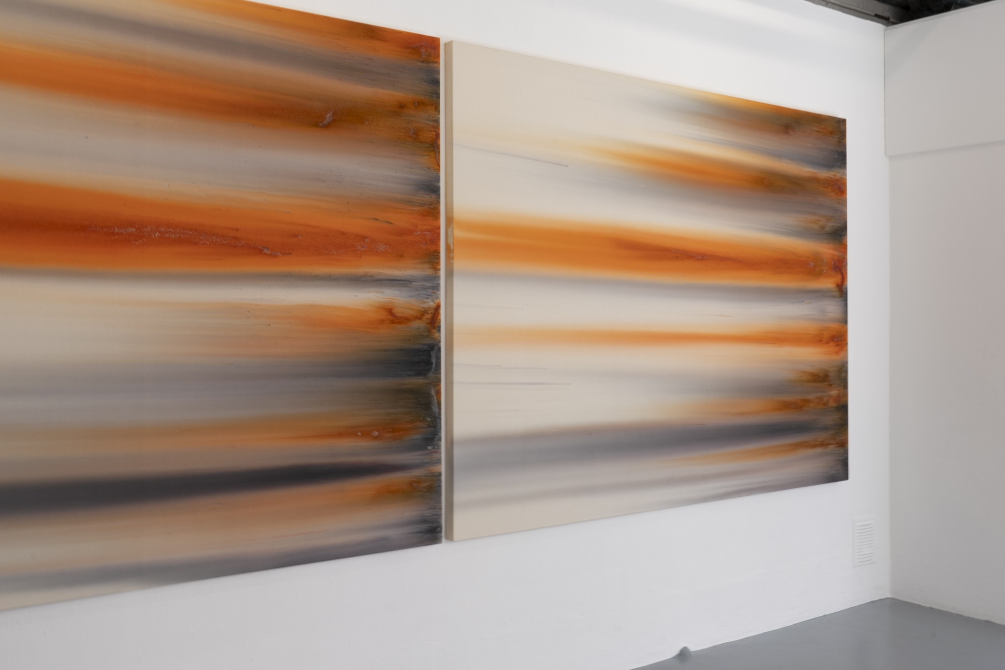 Lorsque l’on voit de près ces tableaux peints, ou plutôt teints et déteints, l’une des premières surprises